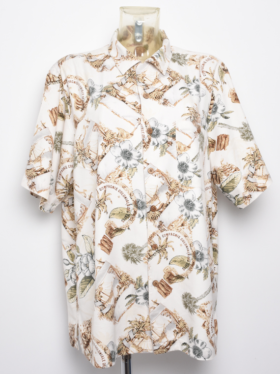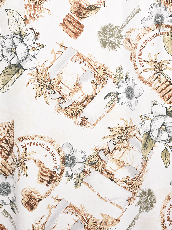 - Imprimé hawaïen Motifs fleurs, palmier, bateau, compagnie coloniale des café