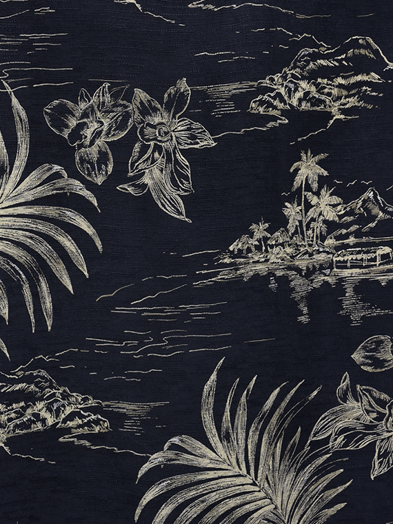 Imprimé Hawaïen motifs feuilles, palmiers, iles